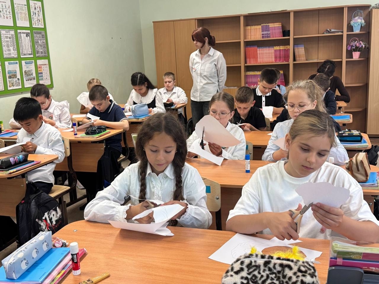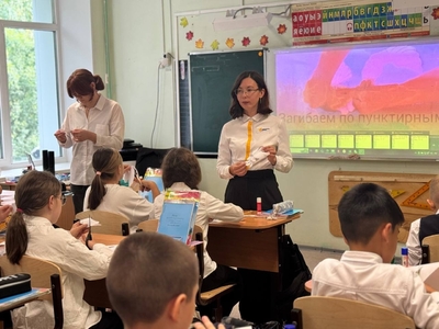 Именно этому событию было посвящен урок в первой школе – акция «По следам героев». Учащиеся 4 классов вместе с советником директора по воспитанию и взаимодействию с детскими общественными объединениями Черновой Д.В. и командой первичного отделения посмотрели презентацию, перелистали некоторые страницы Второй мировой войны: узнали про количество государств-участников и места боевых действий.